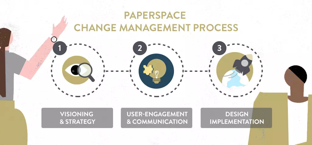 For the team here at Paperspace, our approach follows three simple steps: 1. Visioning & Strategy; 2. User-Engagement & Communication; and 3. Design Implementation. Throughout each of these steps we put people front and centre, engaging and communicating with them at every step of the way. This is particularly important in the case of workplace strategy and design as afterall, your employees are the key users of any processes you implement or any offices you open.
