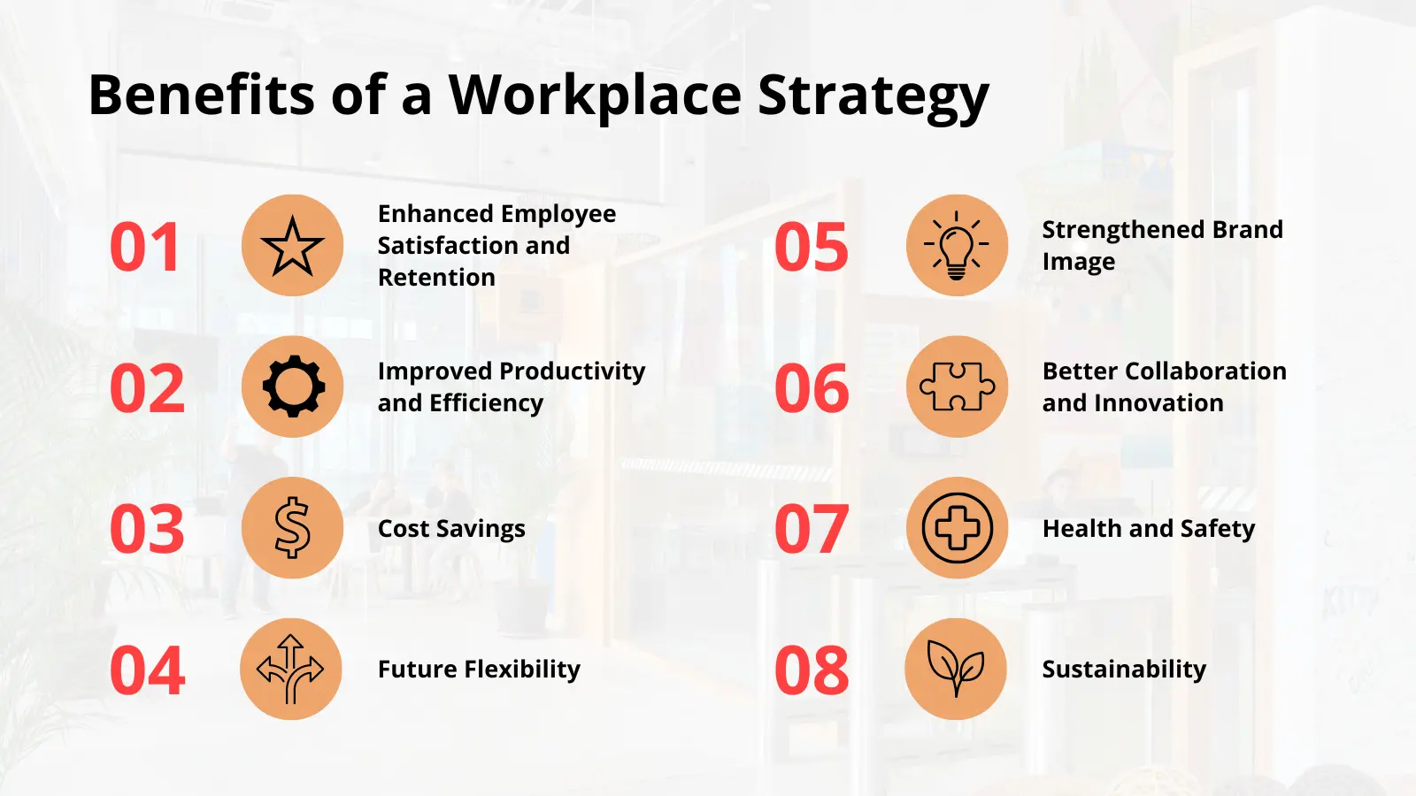 By developing a comprehensive workplace strategy, organisations can create a well-designed office space that supports their business objectives, enhances employee satisfaction and productivity, and remains flexible and sustainable for future needs.